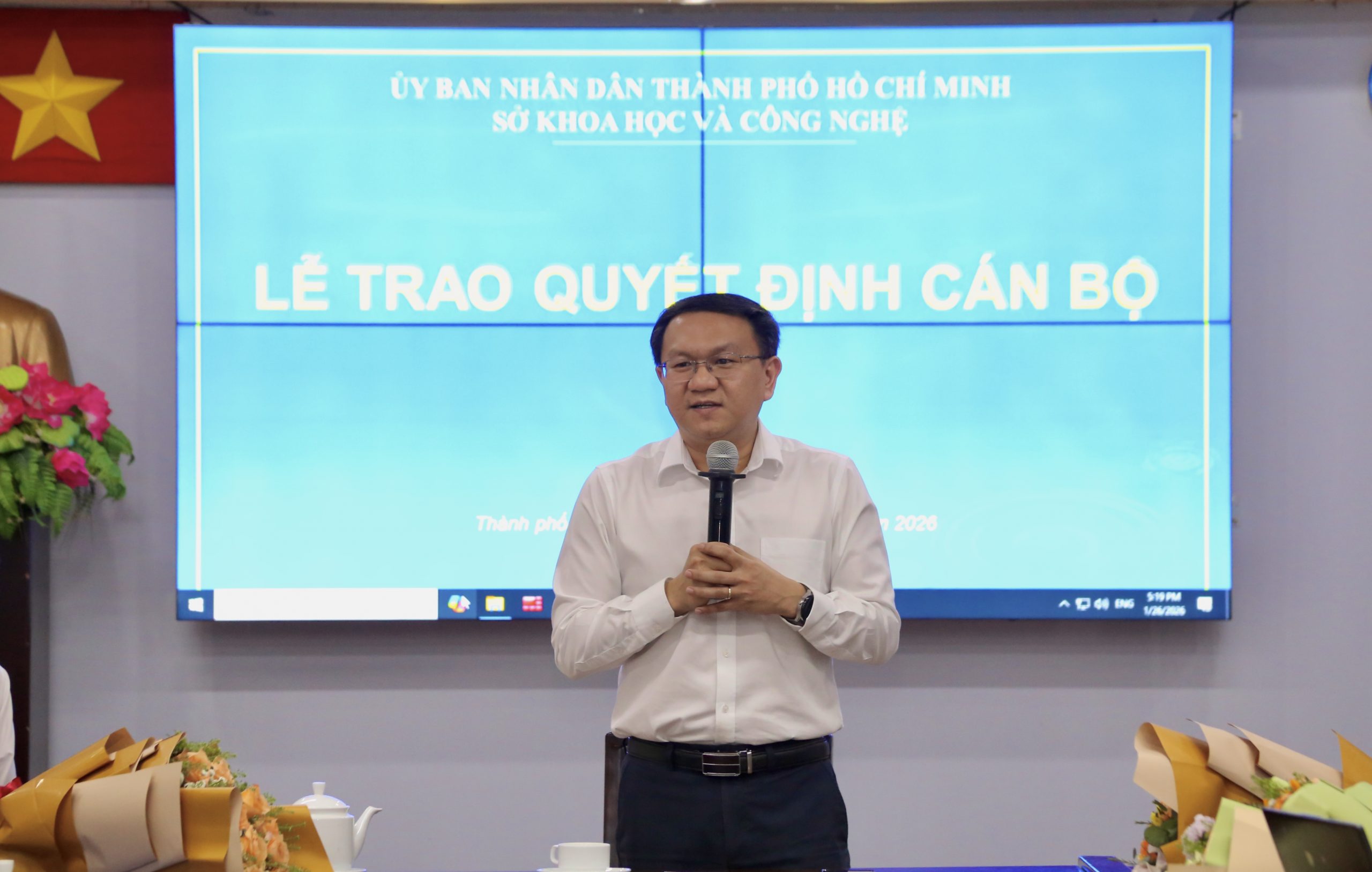 Cụ thể hóa việc triển khai quyết định nêu trên và để kịp thời kiện toàn bộ máy lãnh đạo đơn vị sau khi thay đổi cơ quan chủ quản, ngày 26/01/2026, tại Hội trường Sở KH&CN đã diễn ra Lễ công bố và trao quyết định về công tác cán bộ đối với nhân sự lãnh đạo Trung tâm.