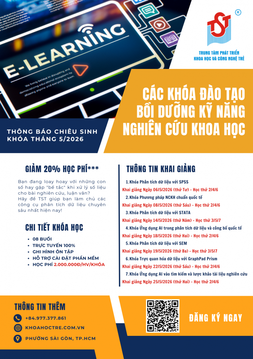 Nhằm hỗ trợ sinh viên, học viên cao học và cán bộ nghiên cứu làm chủ các công cụ hiện đại trong việc xử lý số liệu và hoàn thiện đề tài, Trung tâm thông báo chiêu sinh chuỗi đào tạo kỹ năng chuyên sâu dự kiến khai giảng trong tháng 5/2026.