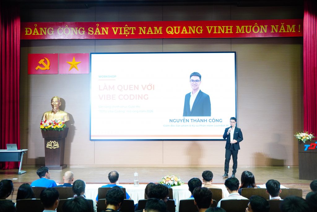Sáng ngày ngày 03/4/2026 – Trường Đại học Tôn Đức Thắng (TDTU) chính thức phát động cuộc thi sáng tạo “TDTU Vibe Coding” mở rộng năm 2026, lần đầu tiên dành cho cả sinh viên đại học và học sinh trung học phổ thông. Đây được xem là một bước đi đột phá trong việc đưa trí tuệ nhân tạo (AI) vào môi trường giáo dục thực tiễn, góp phần thúc đẩy đổi mới sáng tạo trong giới trẻ.